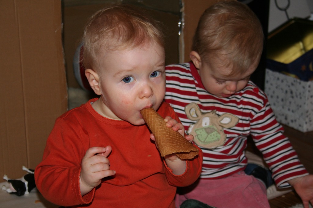 Wir begreifen es noch gar nicht richtig, aber Sunke und Katrin feiern richtig das sie uns 365 Tage genossen und ertragen oder sollte man sagen, überlebt haben. Unser erster Geburtstag ist richtig aktiv (wie fast jeder Tag mit unseren Eltern). Morgens direkt nach dem Aufstehen dürfen wir einen paar Geschenke auspacken. Auf dem einen Bild hier seht ihr wie wir uns über ein paar Tiere freuen, die wir schon aus unseren Bilderbüchern kennen und deren Geräusche wir schon lautstark von uns geben. Vormittags gab es dann noch ein Brunch mit Freunden wo wir aus dem auspacken gar nicht mehr raus kamen, wir wussten häufig nicht was schöner ist: das bunte Papier oder der Inhalt. Abends haben wir dann bei Freunden in das Jahr 2007 und unser 2tes Lebensjahr hinein gefeiert. Das 2te Bild ist am 1.1.2007 entstanden, Sunke hat uns als diensthabener Ostfriesen-Papa Neujahrskuchen gemacht, 1 Jahr und 1 Tag und unser erstes Stück Kuchen :)! |